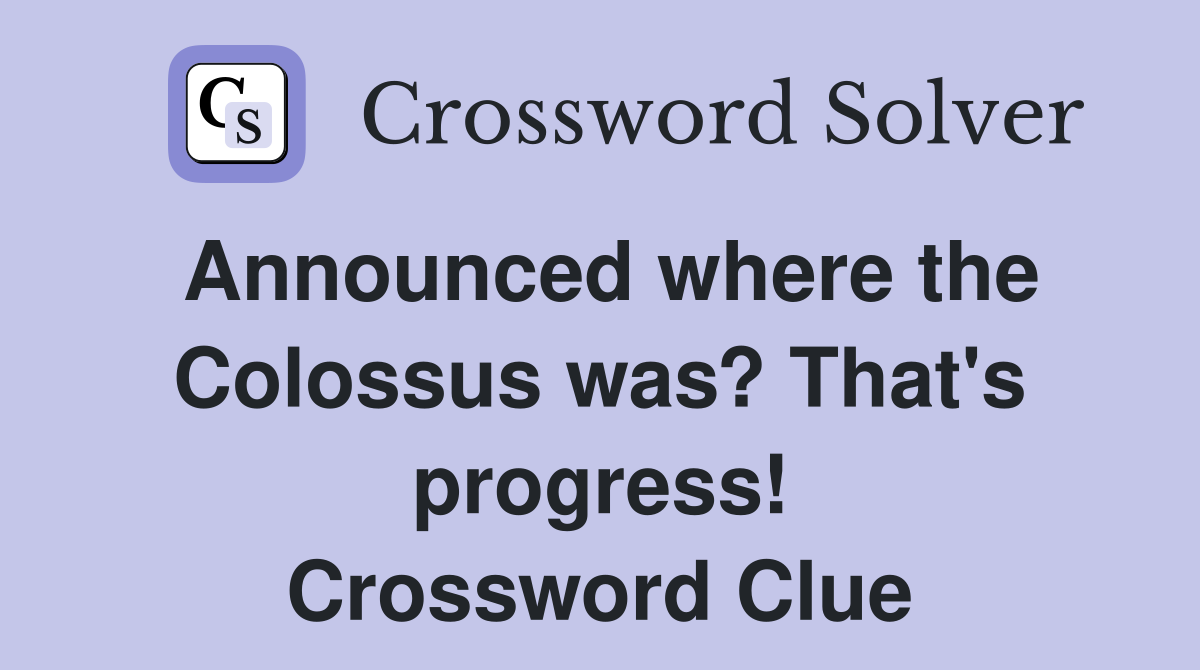 Announced where the Colossus was? That #39 s progress Crossword Clue