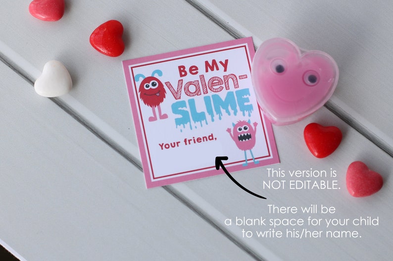 Slime Valentine Printable Editable Slime Valentine Tag Printable