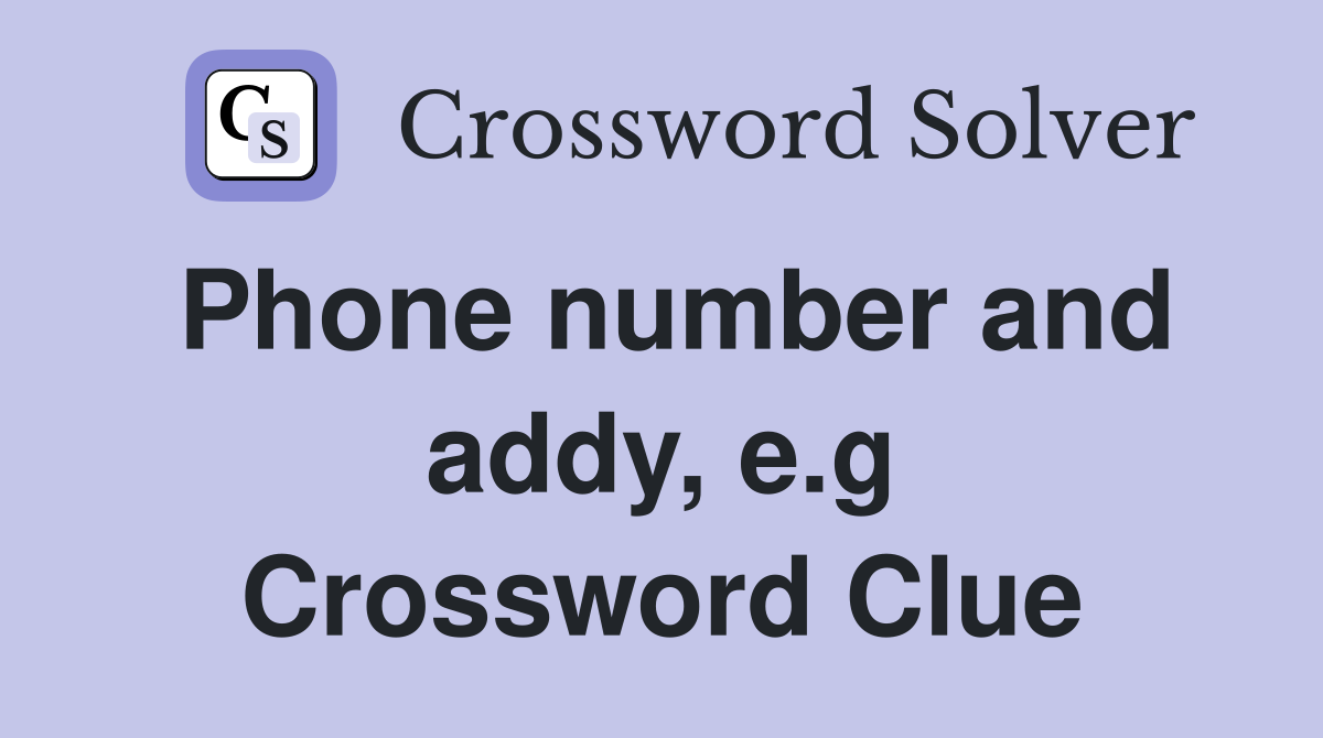Phone number and addy e g Crossword Clue Answers Crossword Solver