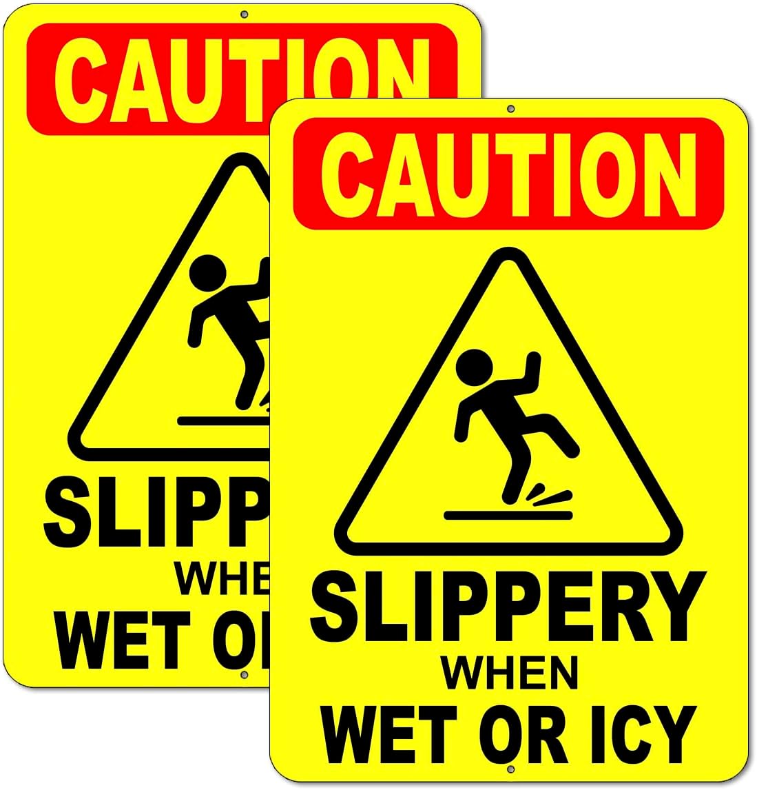 2 PC Caution Slippery When Wet or Icy Signs 10x7 Aluminum Caution Wet