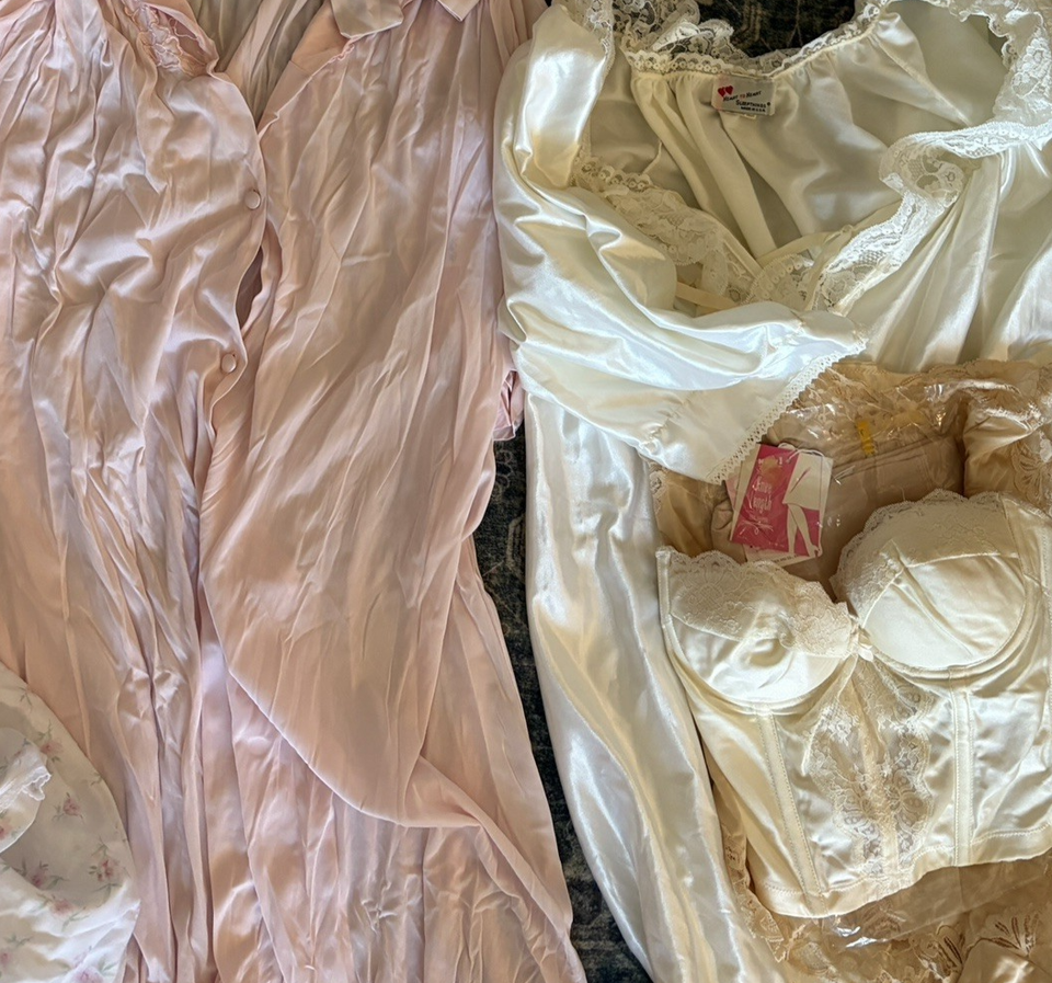 Lot Of 9 gowns robes Slips bras Lingerie Cream White Variety Sizes