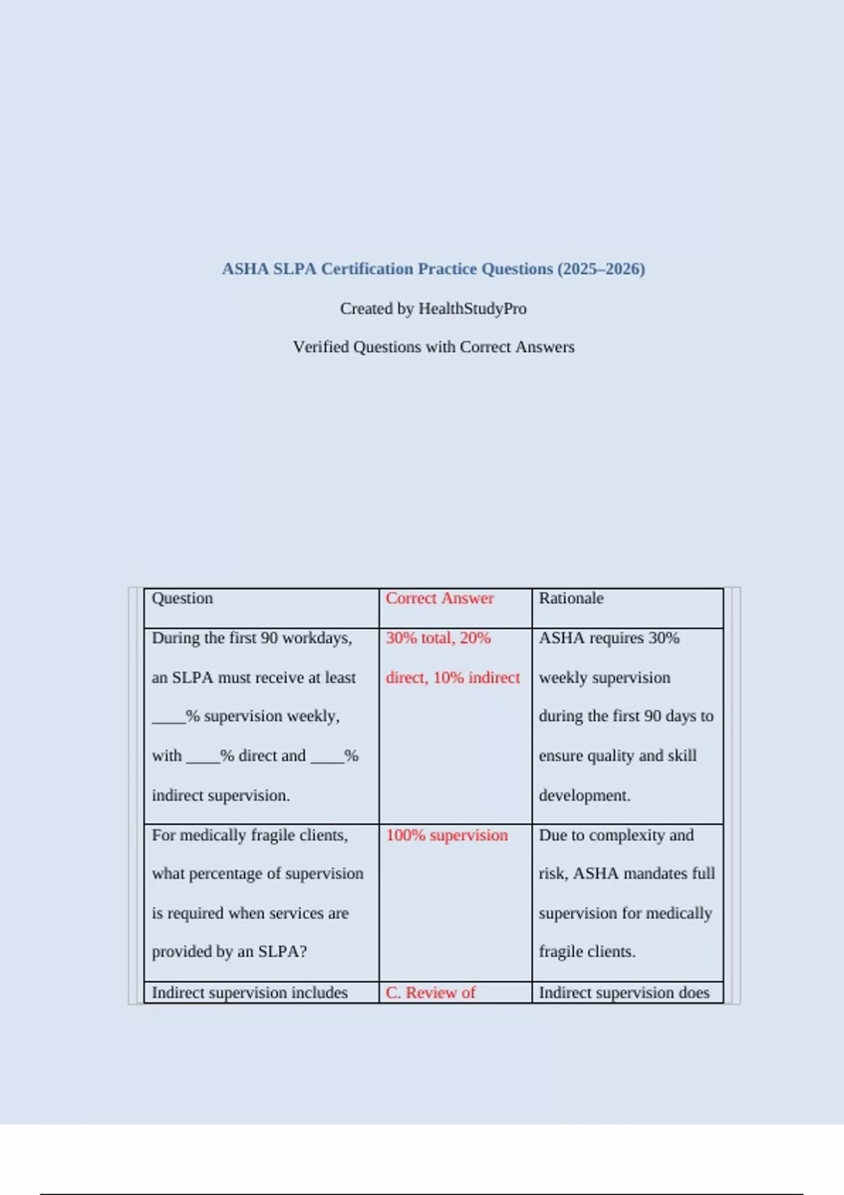 ASHA SLPA CERTIFICATION EXAM 2025 TO 2026 VERIFIED PRACTICE QUESTIONS