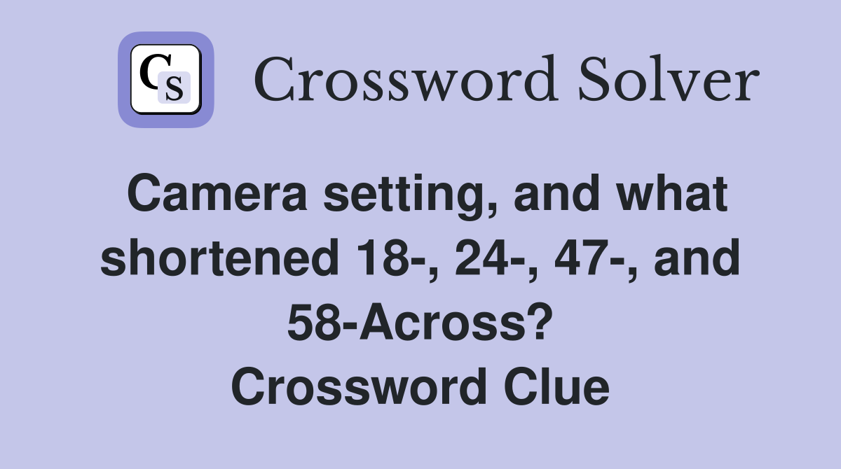 Camera setting and what shortened 18 24 47 and 58 Across