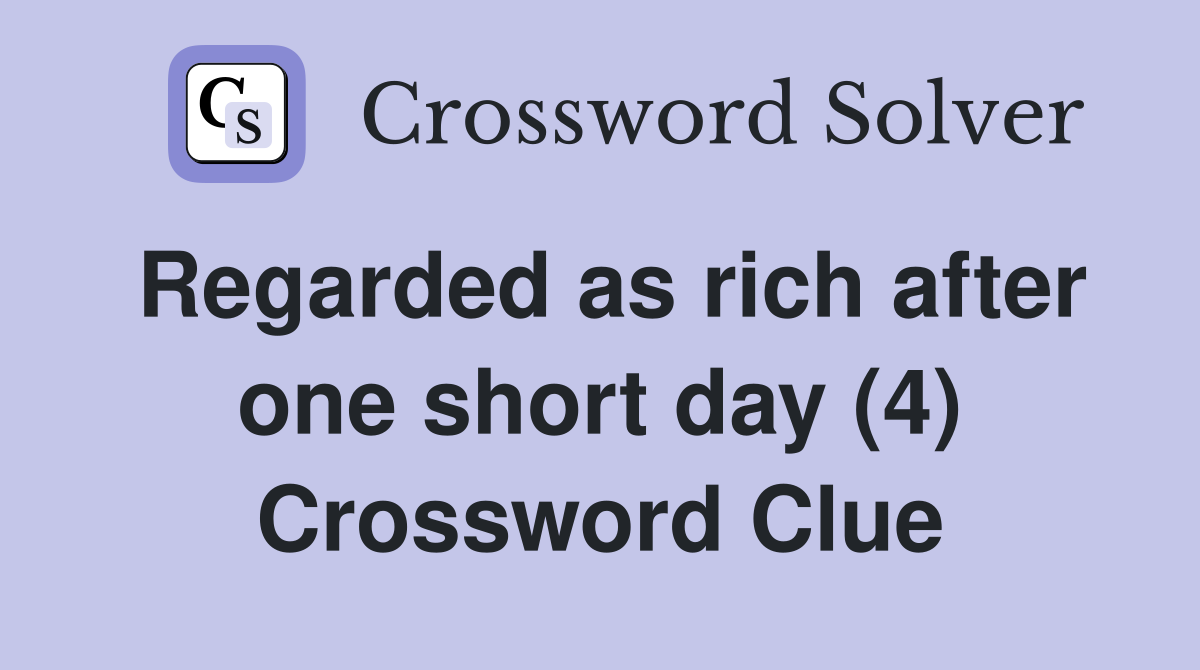 Regarded as rich after one short day (4) Crossword Clue Answers