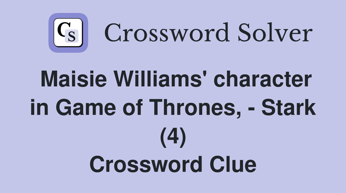 Stark Maisie Williams s Game of Thrones character Crossword Clue