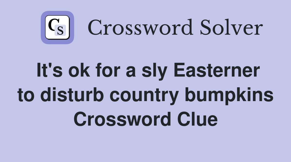 It s ok for a sly Easterner to disturb country bumpkins Crossword