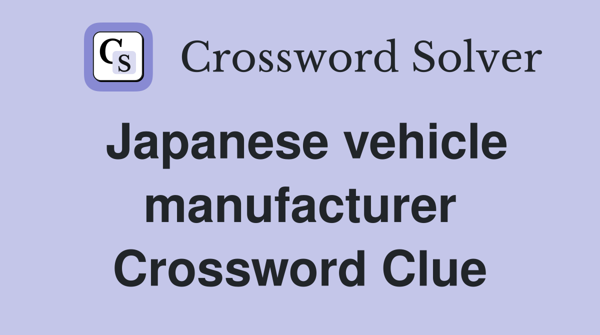 Japanese vehicle manufacturer Crossword Clue Answers Crossword Solver
