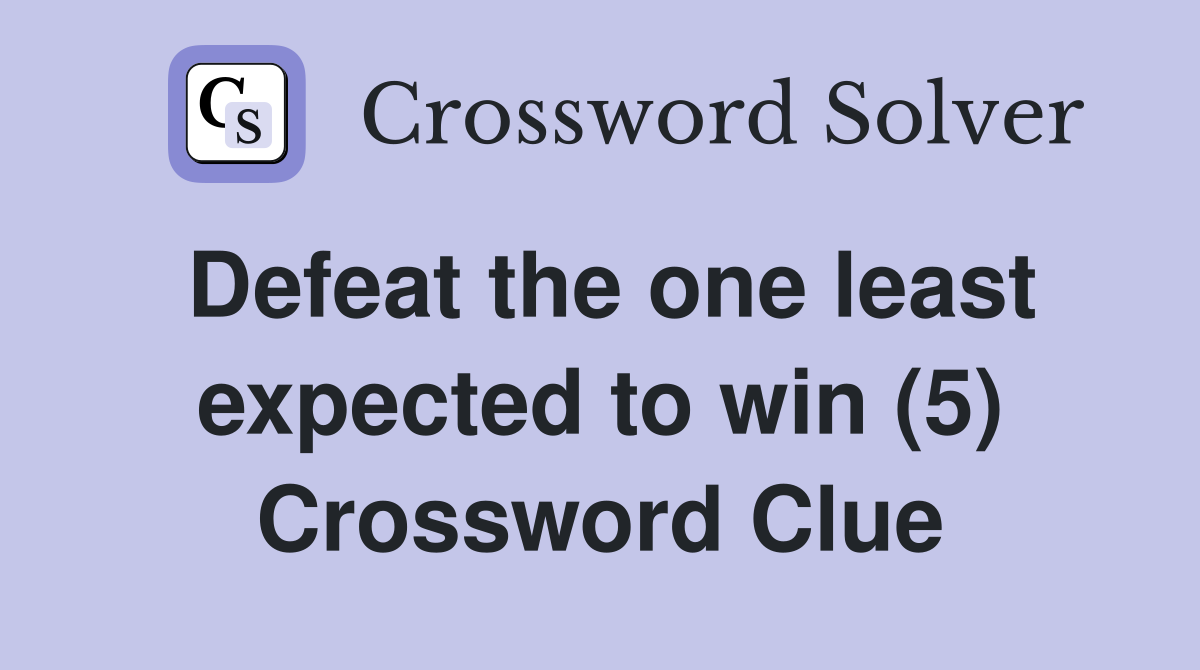Defeat the one least expected to win (5) Crossword Clue Answers