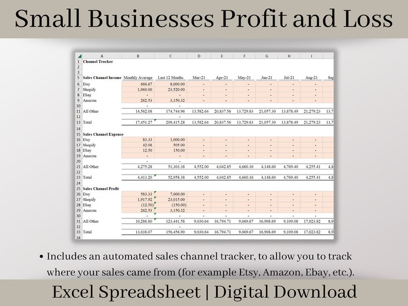 Small Business Bookkeeping Template Profit and Loss Excel Etsy