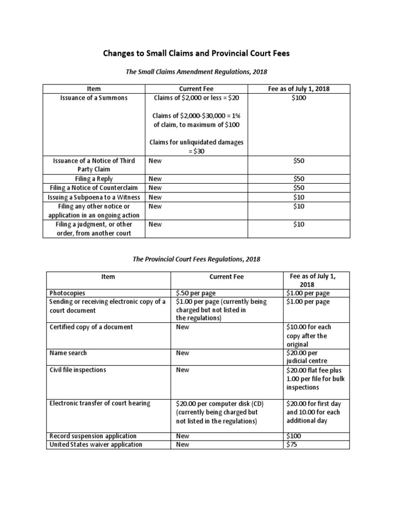 Changes To Small Claims and Provincial Court Fees in Saskatchewan PDF