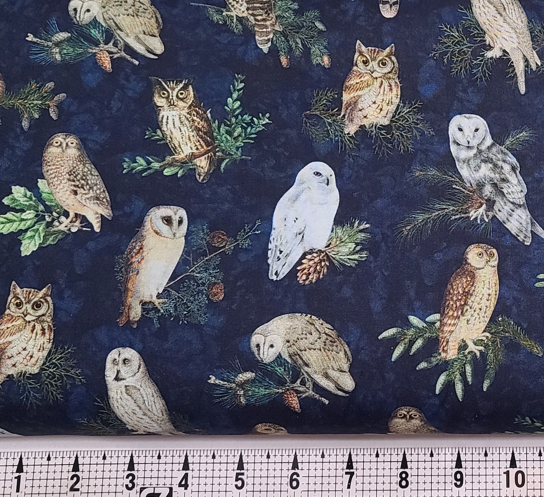 Quilting Treasures Winterhaven Owls on Navy 2600 29899 N Fabric by the
