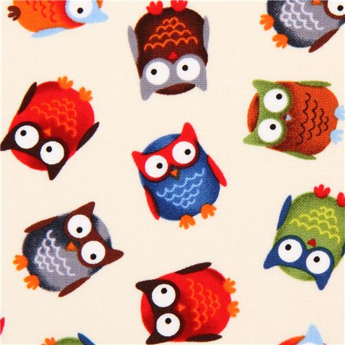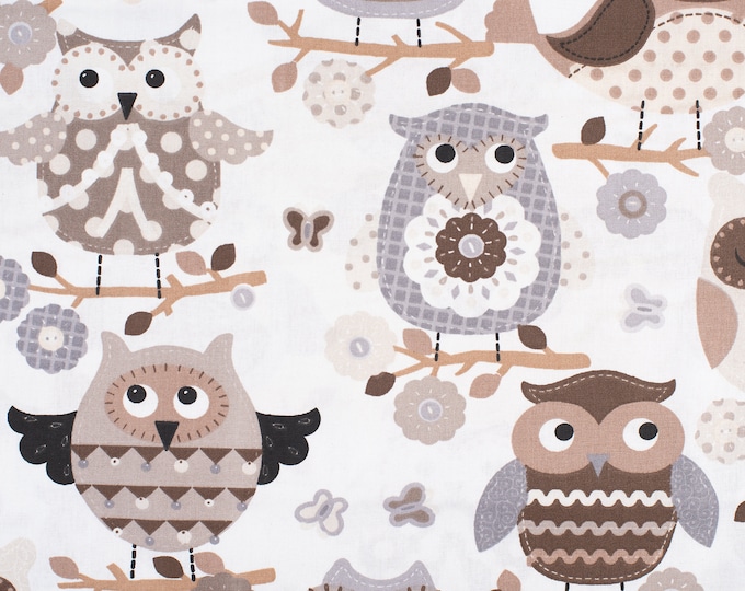 cream owl fabric Timeless Treasures forest animal Fabric by Timeless
