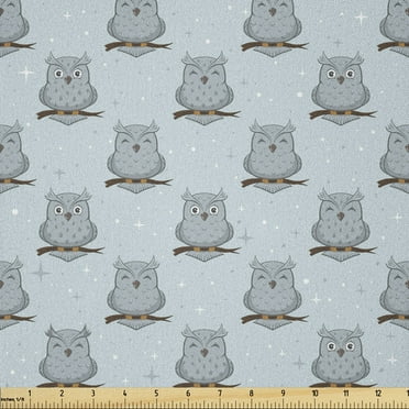 Ambesonne Owls Fabric by the Yard Upholstery Angry Funny Cartoon 10
