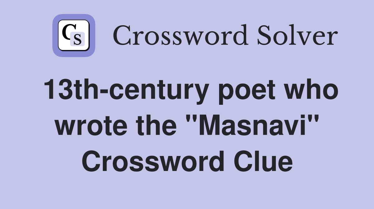 13th century poet who wrote the quot Masnavi quot Crossword Clue Answers