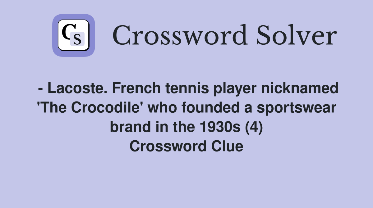 Lacoste French tennis player nicknamed #39 The Crocodile #39 who founded a