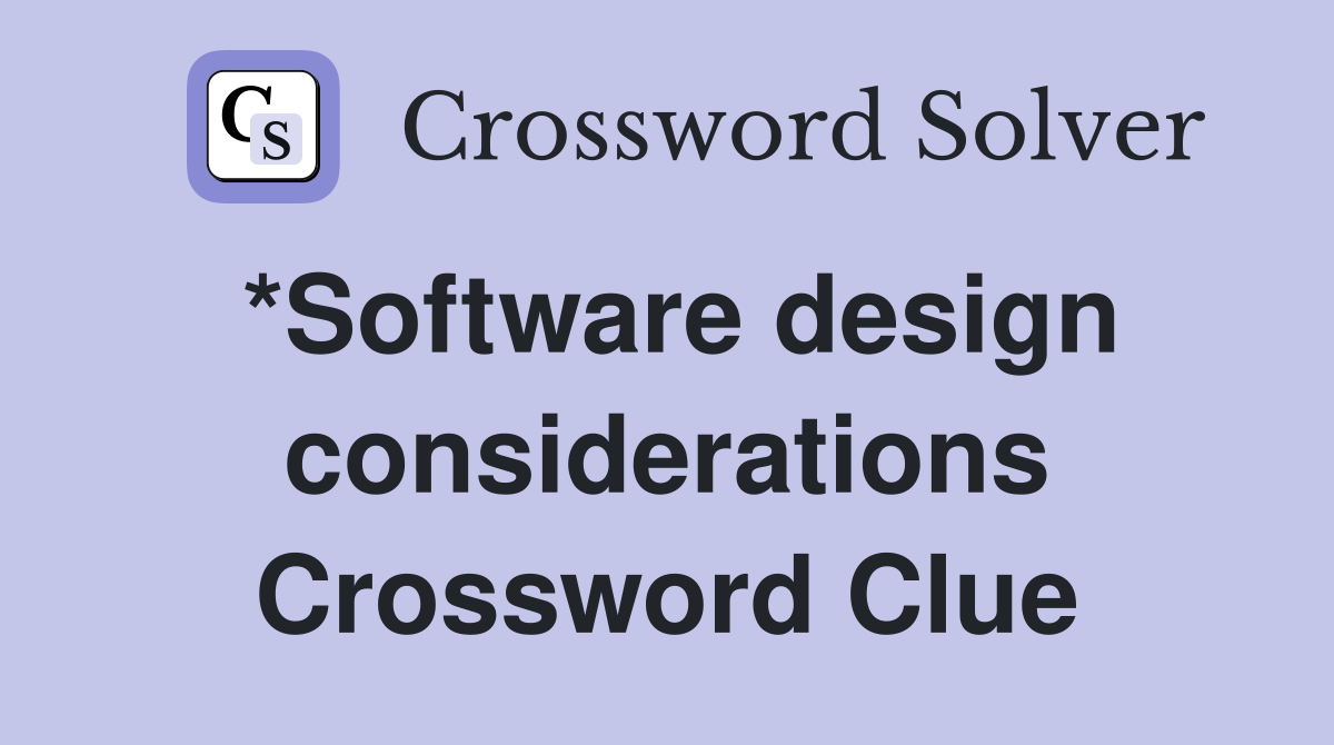 *Software design considerations Crossword Clue Answers Crossword Solver