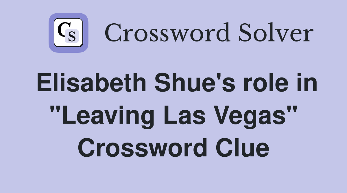Elisabeth Shue #39 s role in quot Leaving Las Vegas quot Crossword Clue Answers