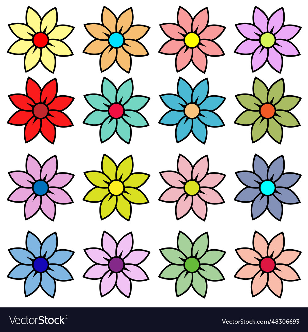 Flower Icon Collection Vector Pastel Color Stock Vector (Royalty Free