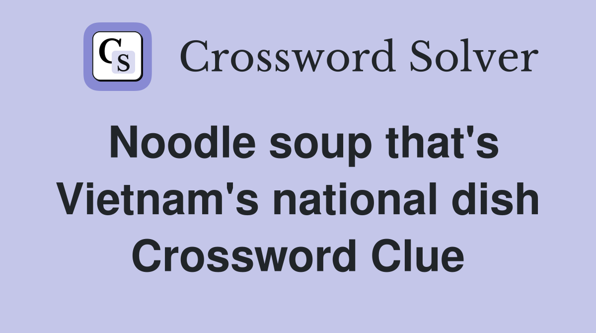 Noodle soup that #39 s Vietnam #39 s national dish Crossword Clue Answers
