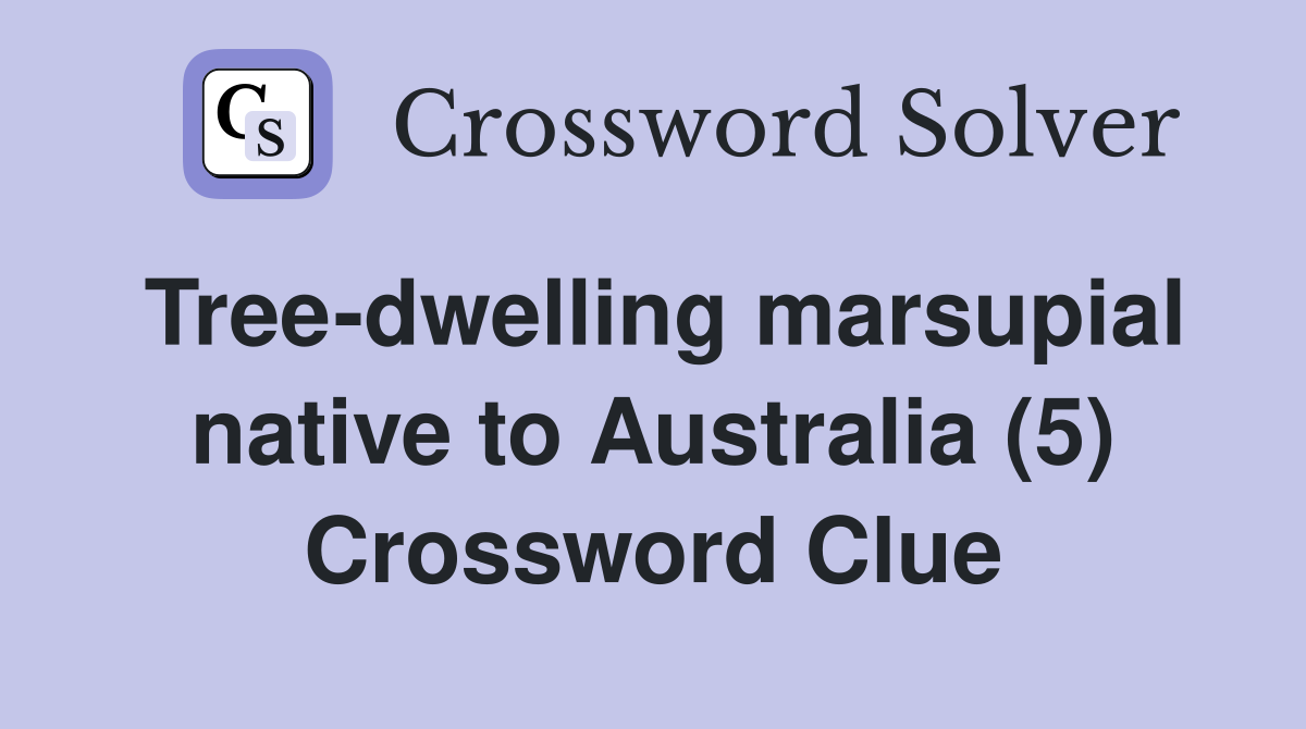 Tree dwelling marsupial native to Australia (5) Crossword Clue
