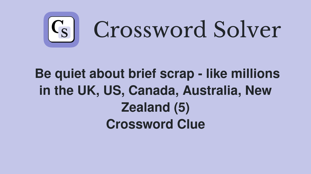 Be quiet about brief scrap like millions in the UK US Canada