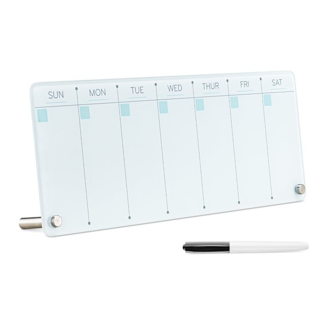 Navaris Weekly Glass Whiteboard Planner Small Dry Erase Calendar for