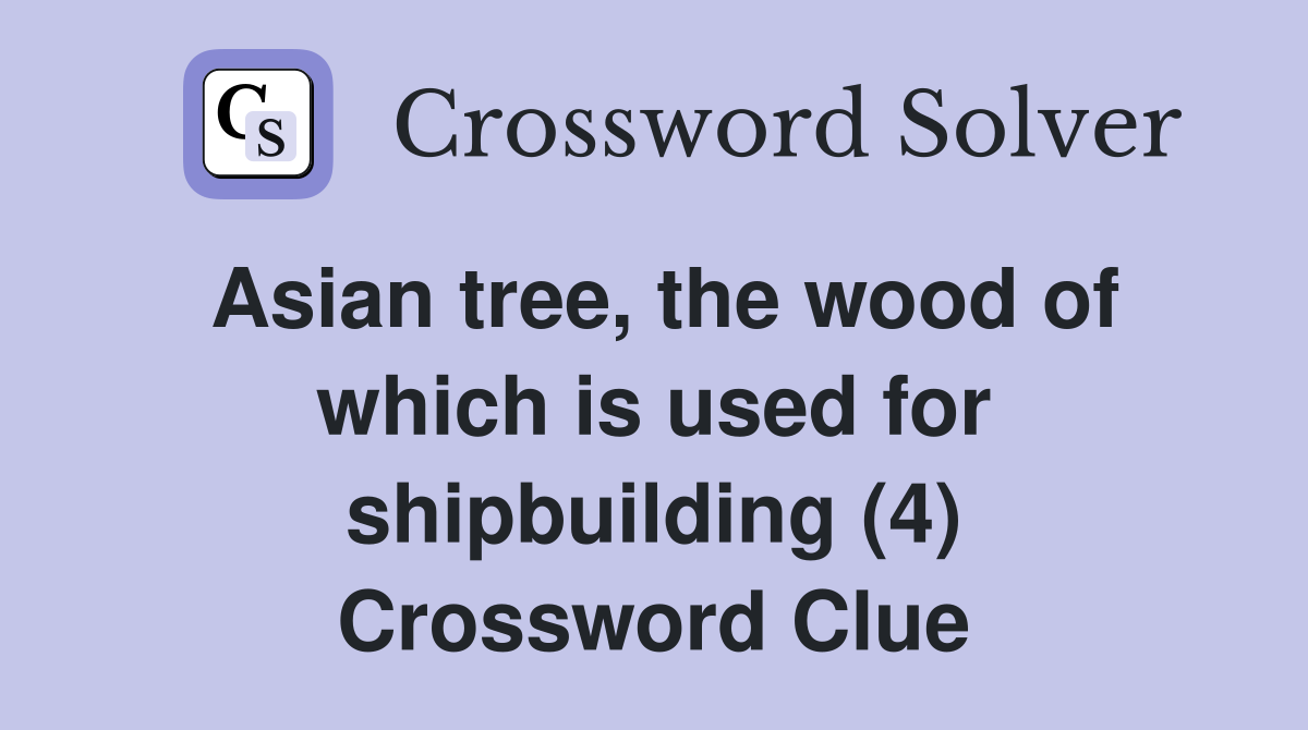 Asian tree the wood of which is used for shipbuilding (4) Crossword