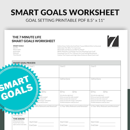 Goal Setting Worksheet SMART Goals Template Printable Etsy Canada