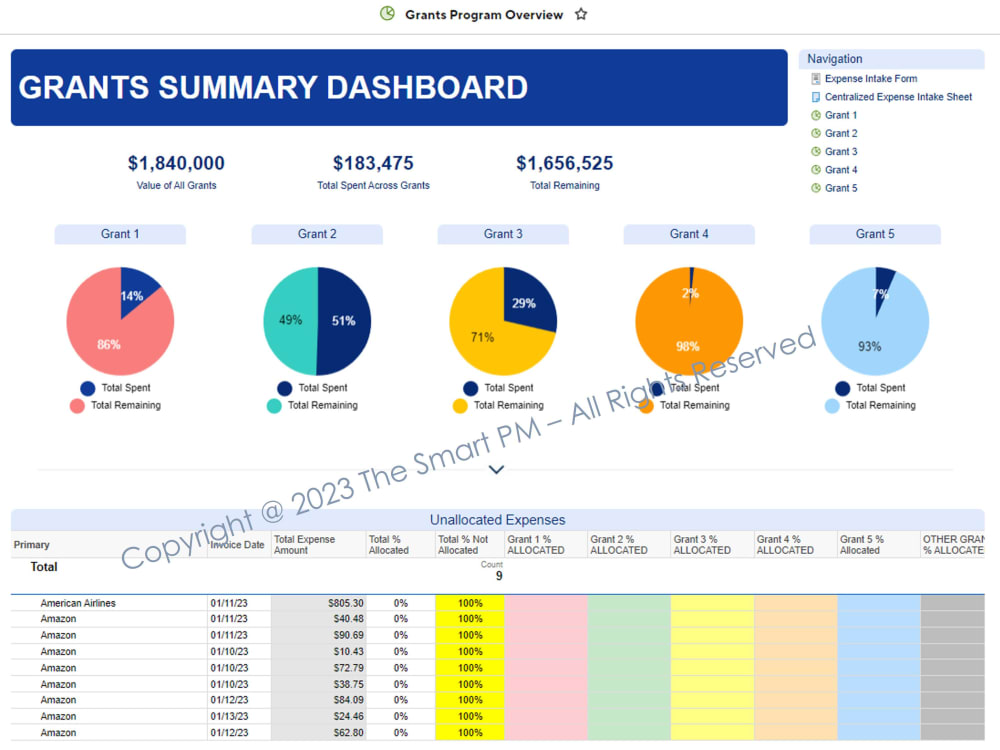 A pre built Grant Funds Management program in Smartsheet Upwork