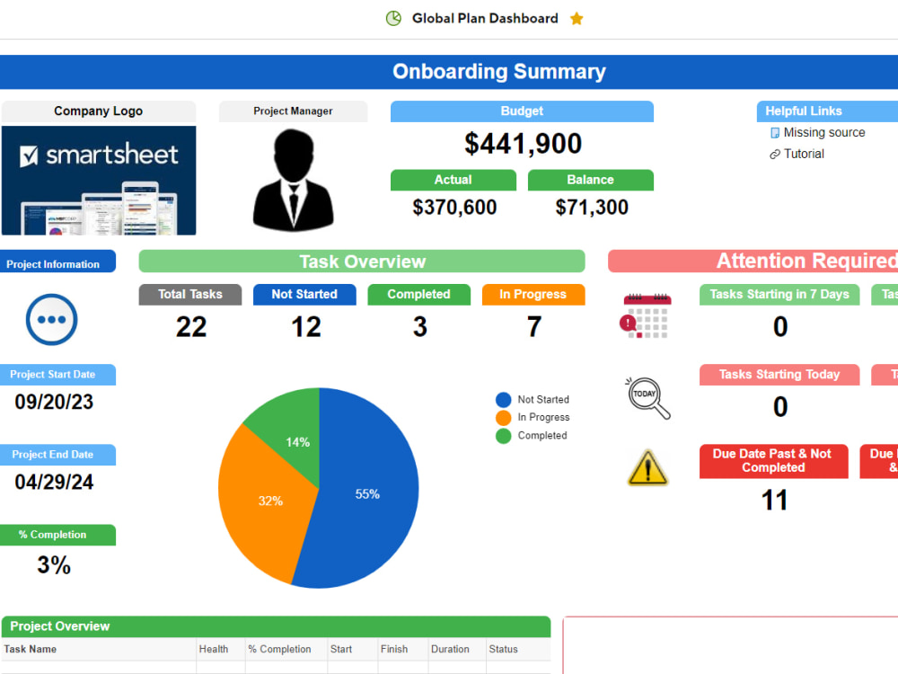 A Smartsheet Dashboard for Project Management Upwork