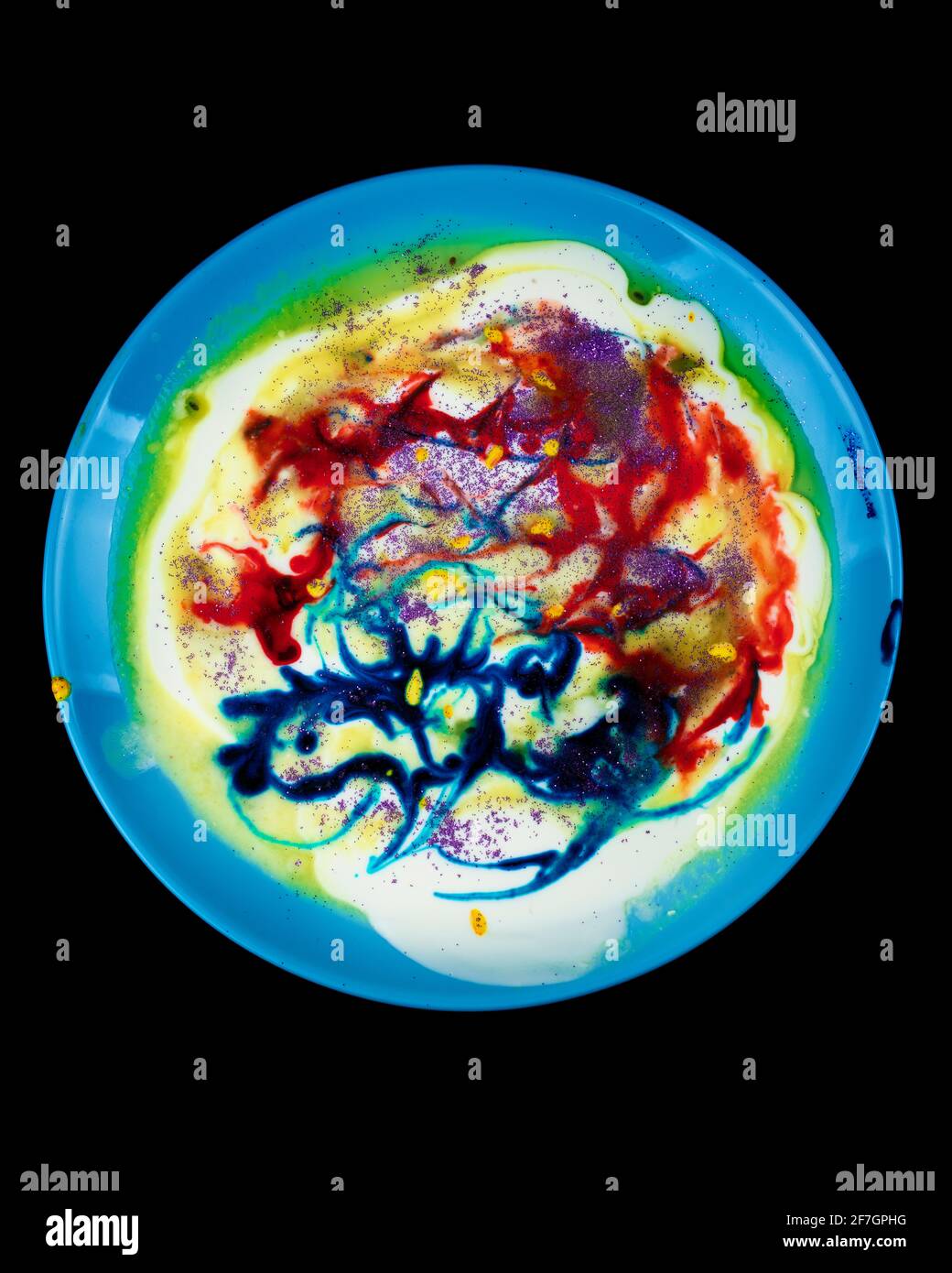 Yellow smeared in a circle with purple sparkles Abstract pattern with