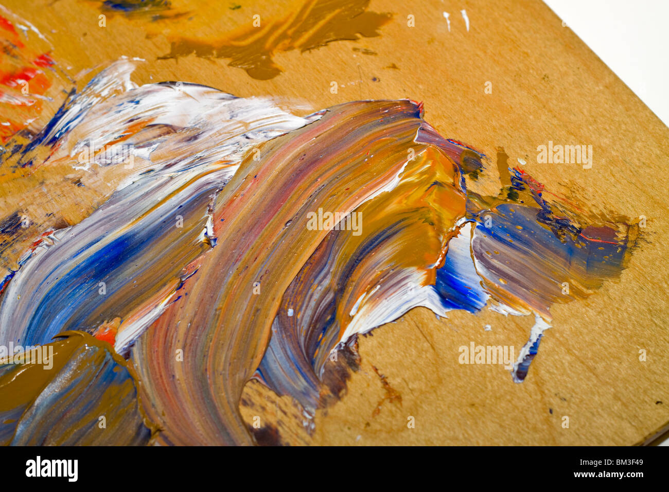 Excited Boy With Face Smeared With Colored Powder Stock Photo