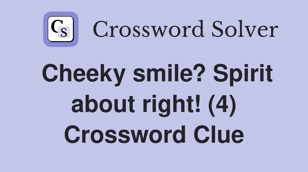 Cheeky smile? Spirit about right (4) Crossword Clue Answers