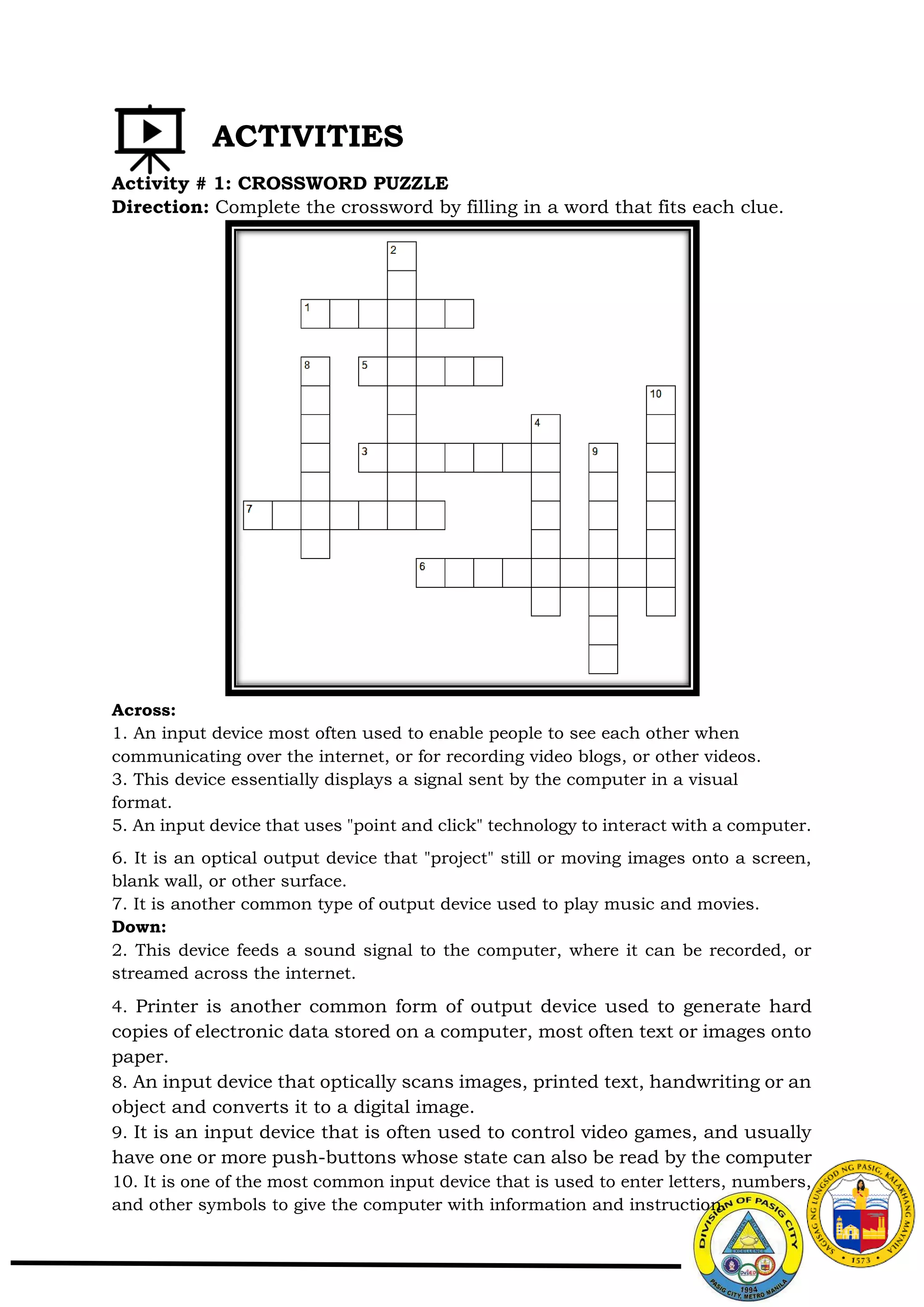 Computer Parts Crossword Puzzle