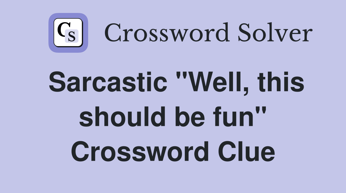 Sarcastic quot Well this should be fun quot Crossword Clue Answers