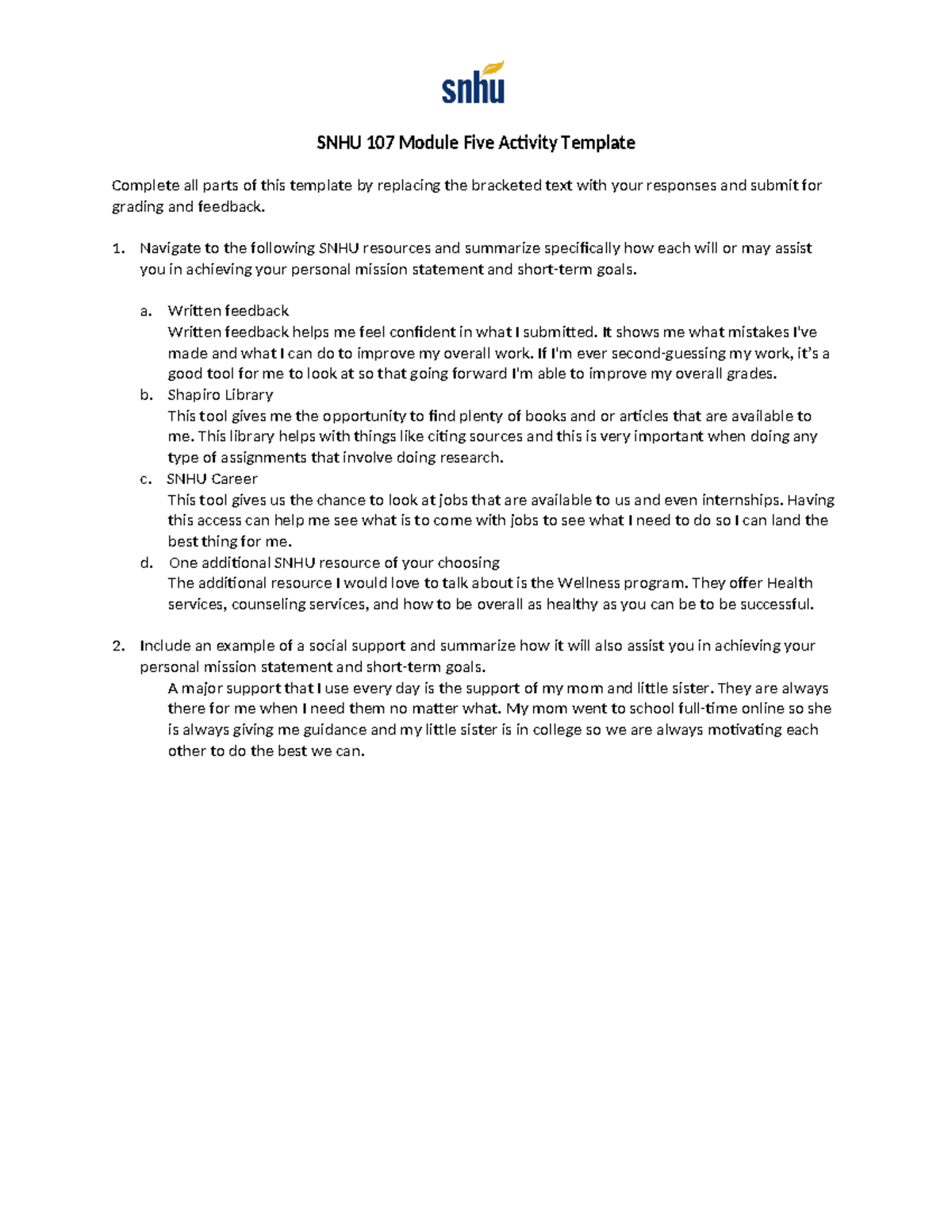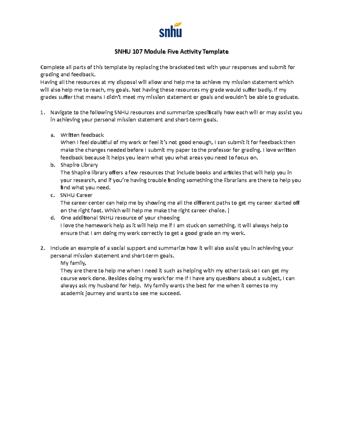 SNHU 107 Module Five Activity Template skauanoe SNHU 107 Module Five