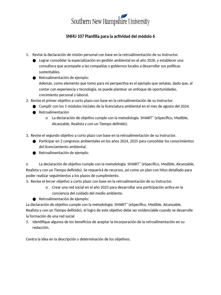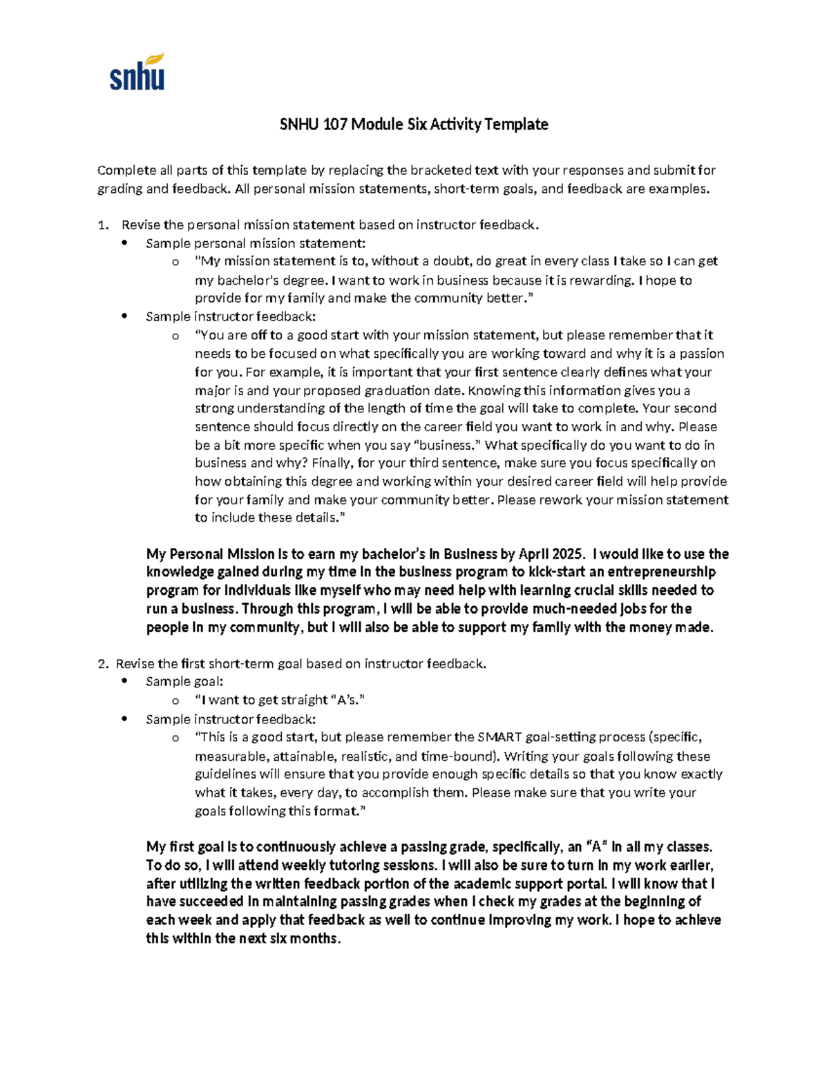 SNHU 107 Module Six Activity Template PDF Goal Goal Setting