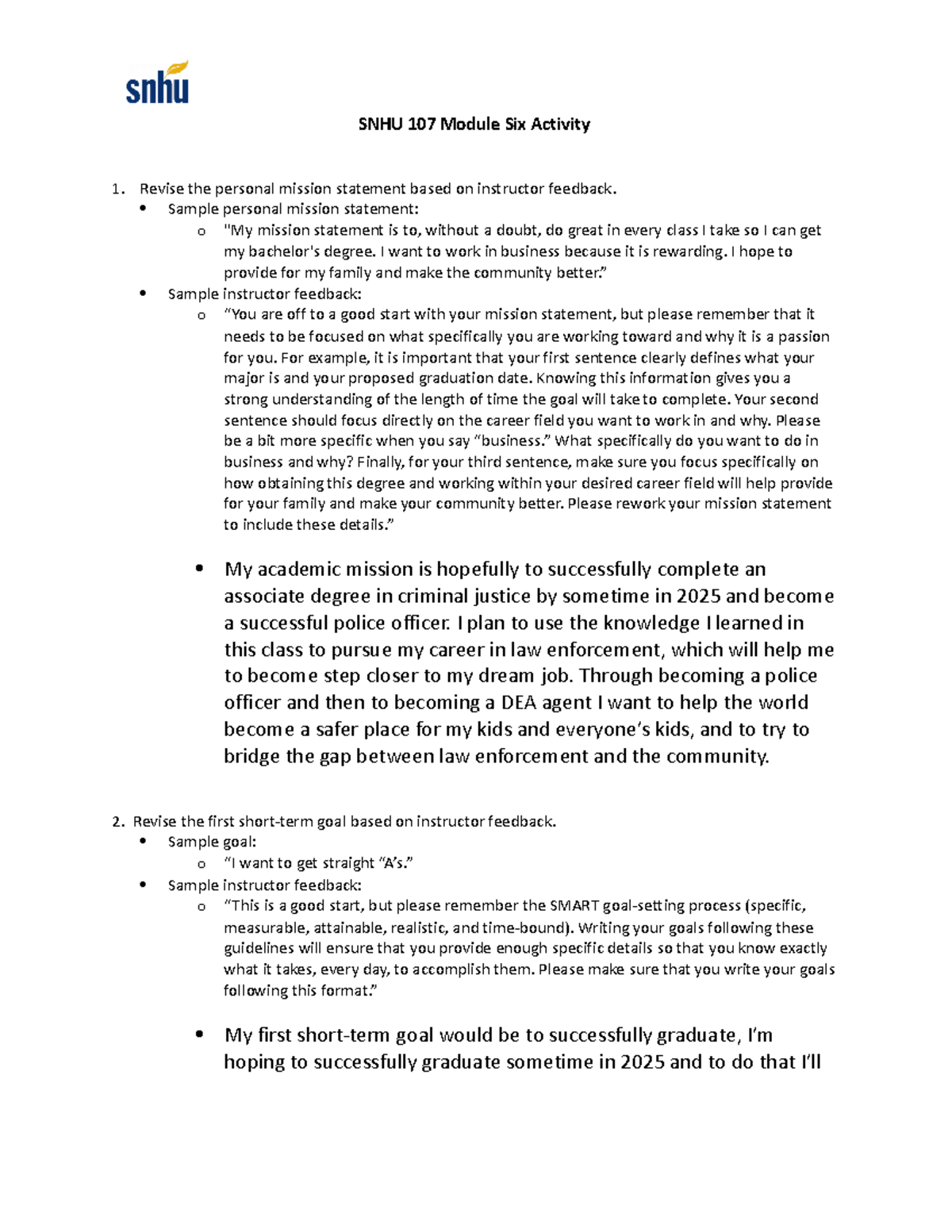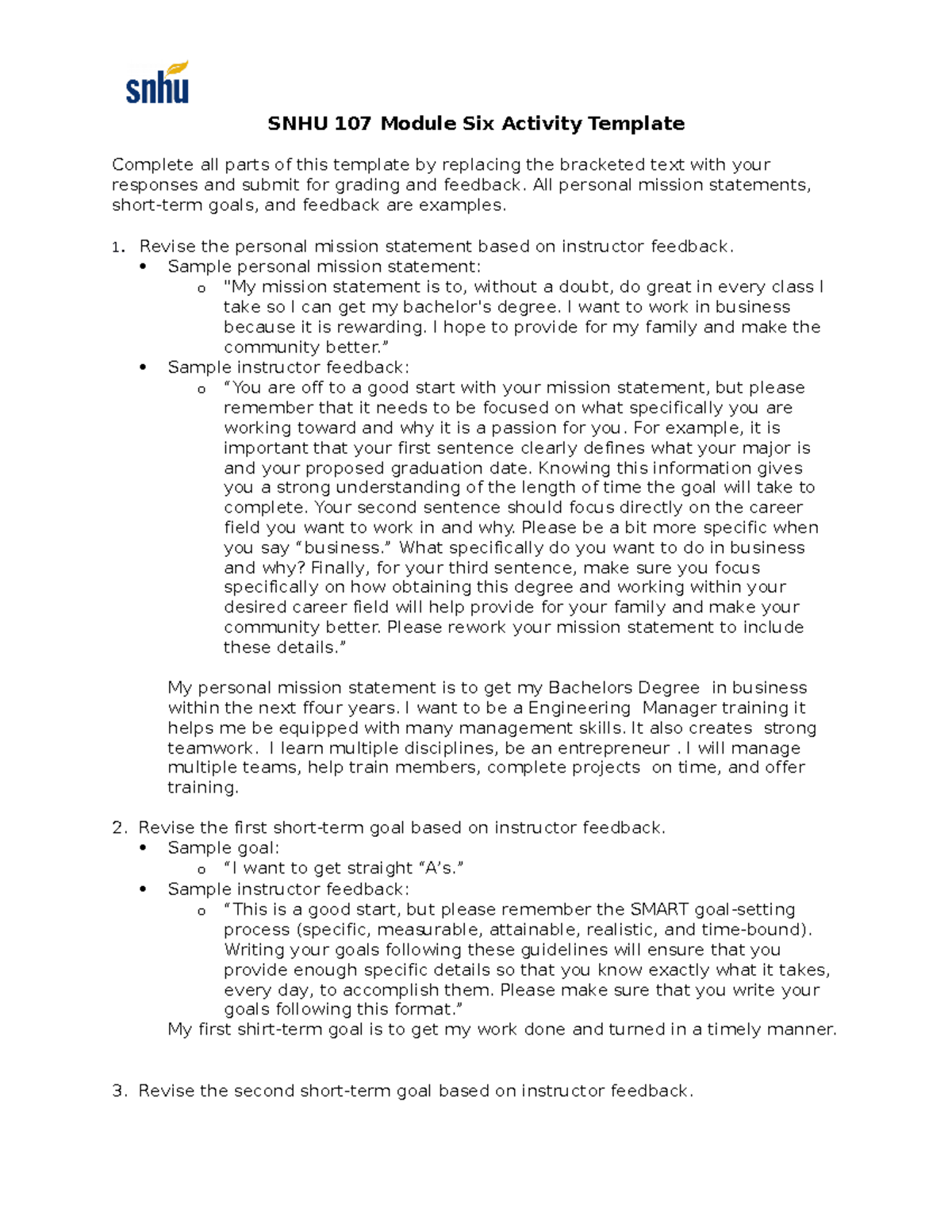 SNHU 107 Module Six Activity SNHU107 SNHU Studocu