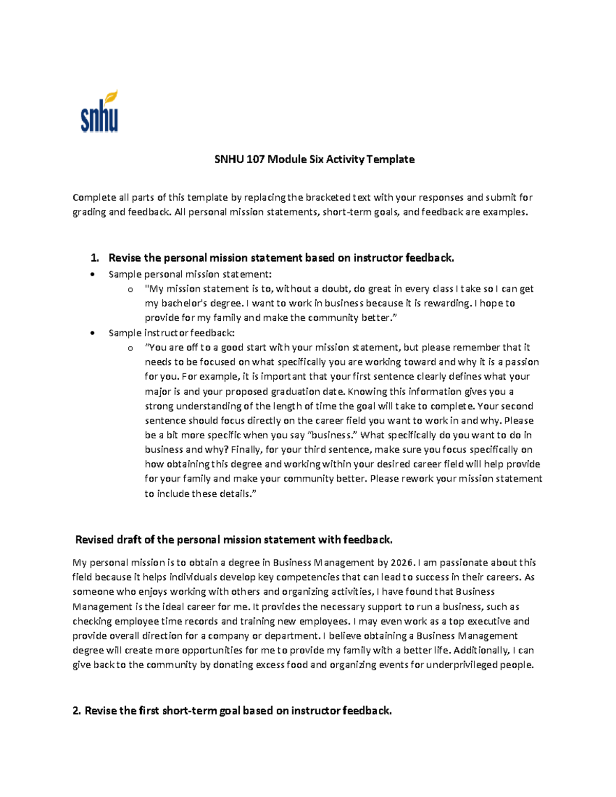SNHU 107 Module Six Activity SNHU 107 Module Six Activity Revise the