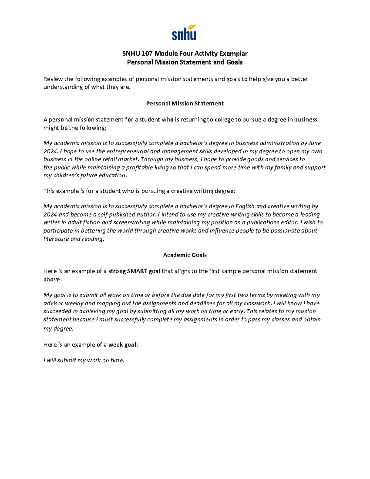 SNHU 107 Module Four Activity complete 1 docx SNHU 107 Module Four