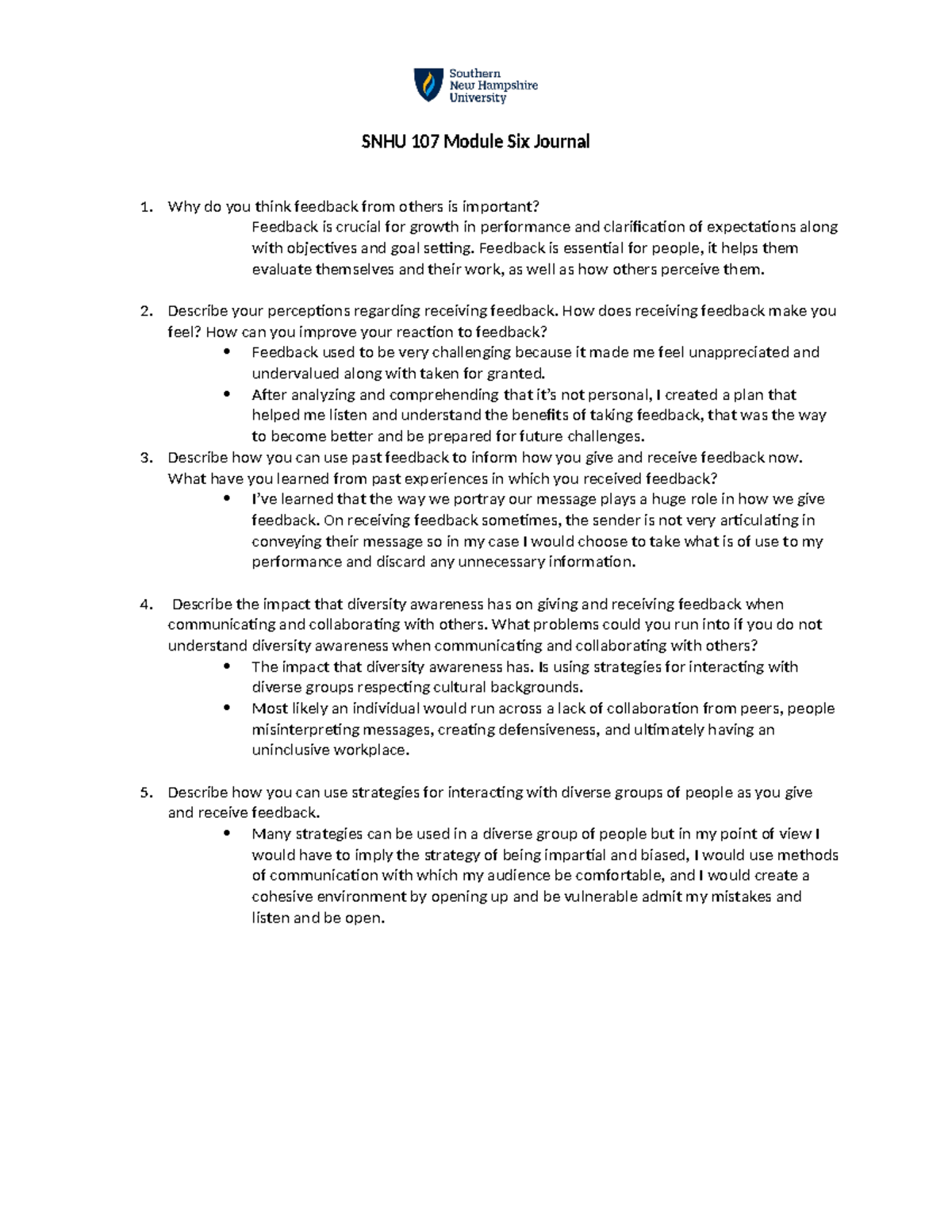 6 1 Activity: Incorporating Feedback SNHU 107 Module Six Activity
