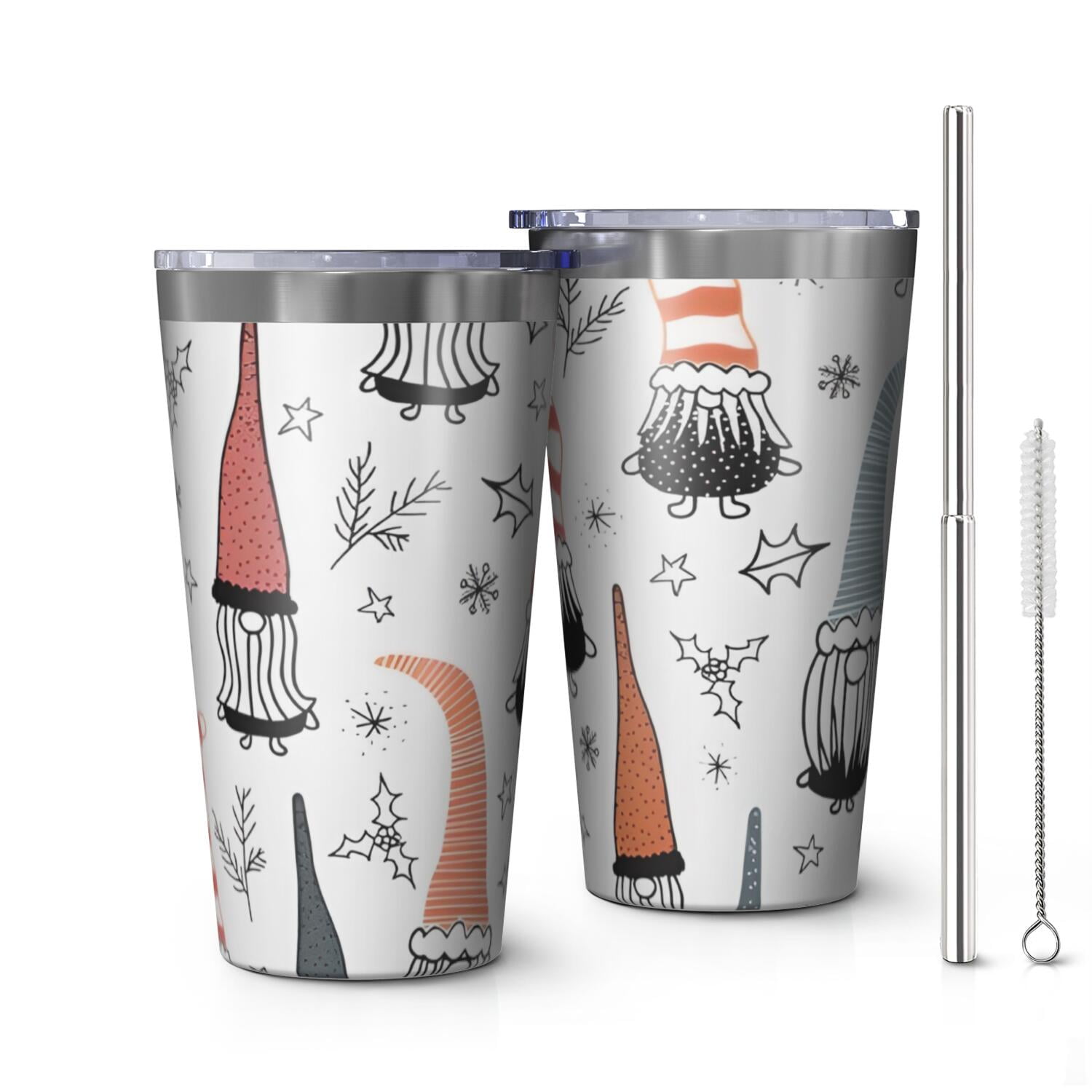 16oz Tumblers White Christmas Gnome and Snowflake Pattern Stainless
