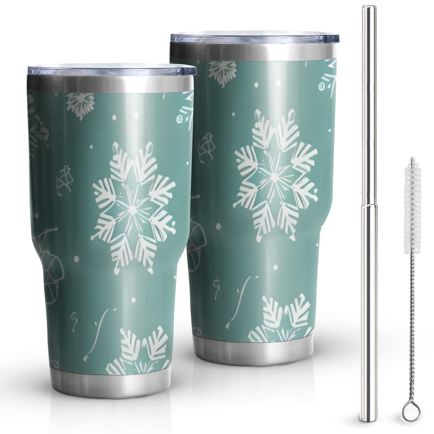30oz Turquoise Christmas Snowflake Pattern Tumblers Stainless Steel