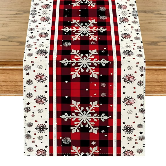 AUQ Christmas Table Runner Snowflake Pattern Linen Table Runner