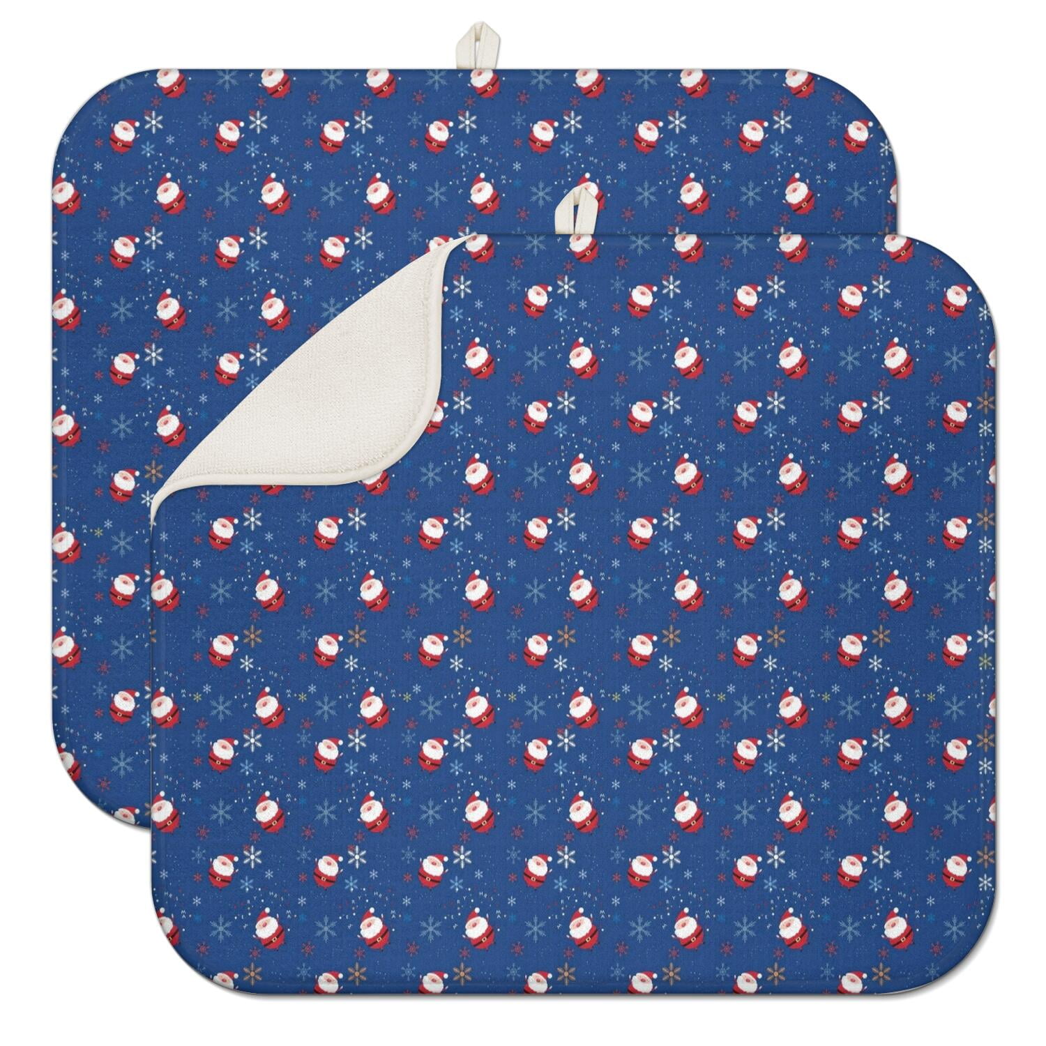 Blue Christmas Santa and Snowflake Pattern Dish Drying Mat for Kitchen