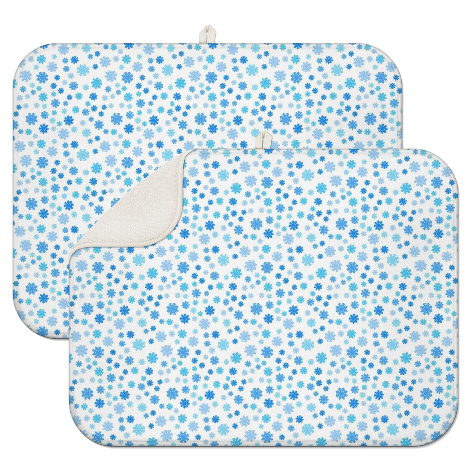 Blue Christmas Snowflake Pattern Dish Drying Mat for Kitchen 1 Pack