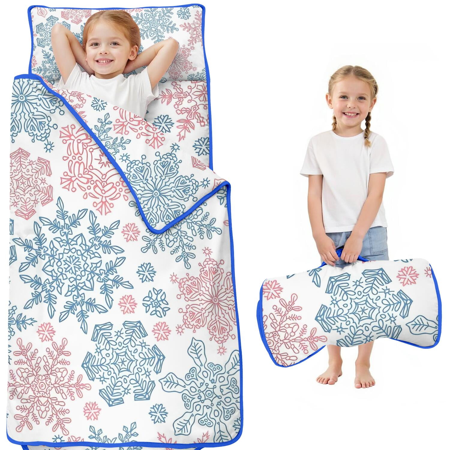 Blue and Pink Christmas Snowflake Pattern Toddler Nap Mats for Kids
