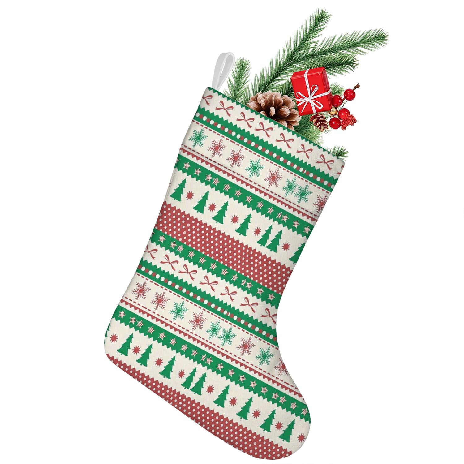 Christmas Stockings Green Christmas Tree and Snowflake Pattern