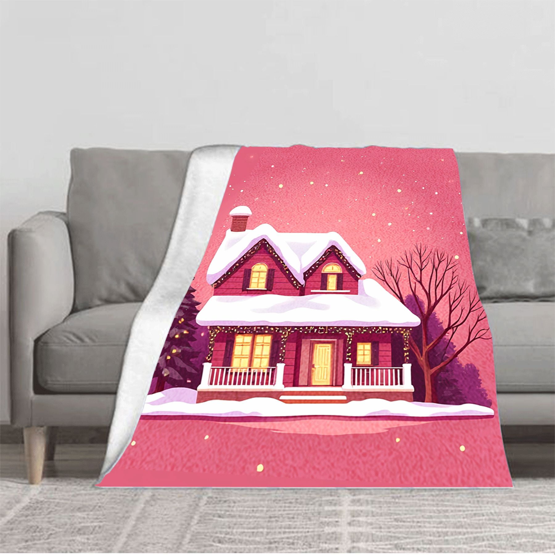Cozy Snowflake Pattern Flannel Blanket Soft Warm for Sofa Travel