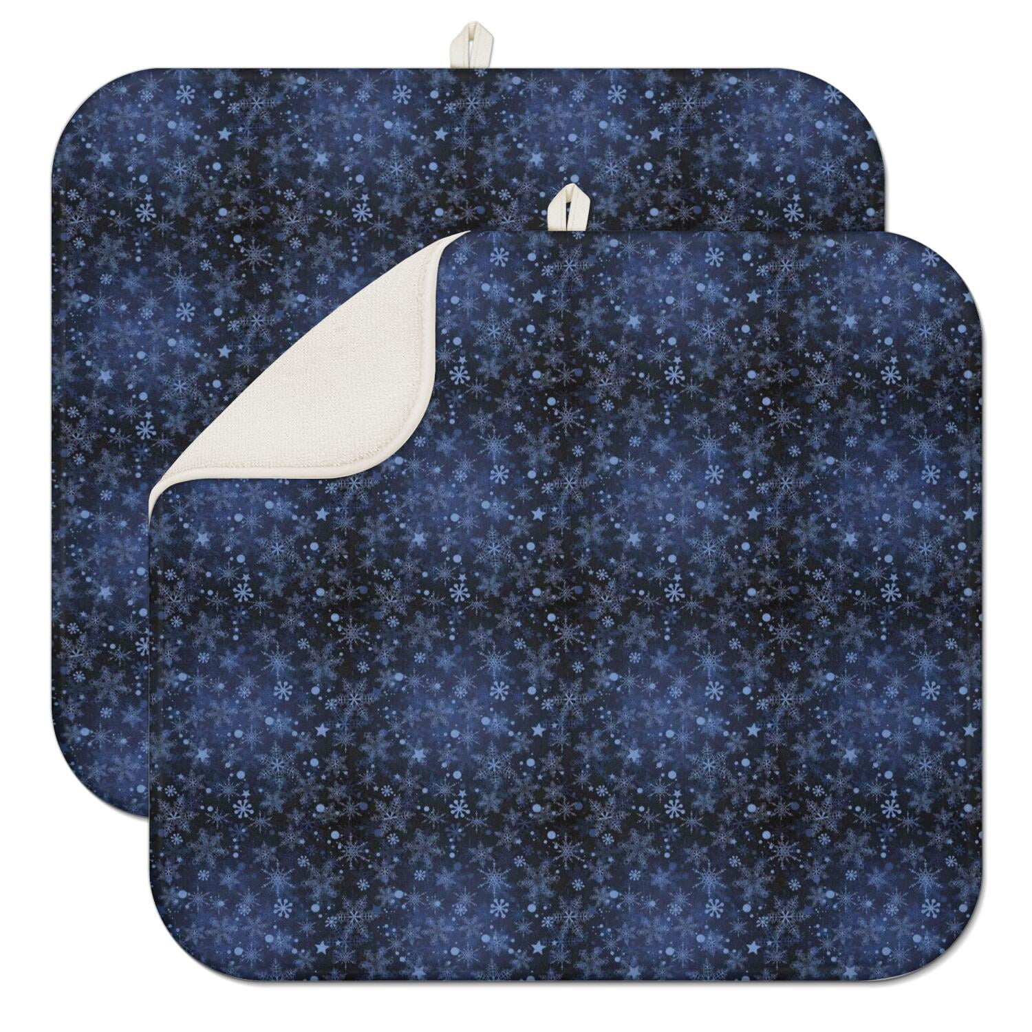 Dark Blue Christmas Snowflake Pattern Dish Drying Mat for Kitchen 1